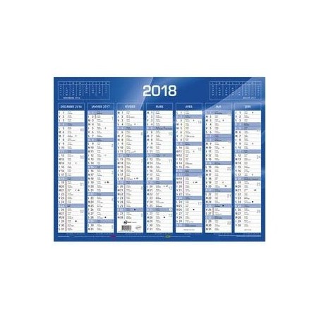 QUO VADIS Calendrier de 7 mois par face avec vacances scolaires en haut, format 55 x 40,5 cm coloris bleu