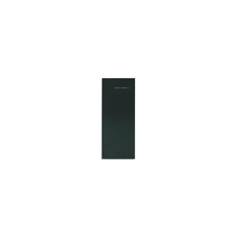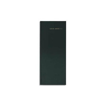 Format 14 x 35 cm, 1 jour par page. Réglure Euros et centimes avec planification par 1/2h de 7h à 20h. Pages récapitulatives mensuelles et annuelles. Mois indexés. Couverture noire. Long.