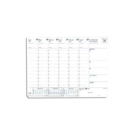 Semainier de bureau sur socle. Les feuilles se détachent et peuvent être stockées dans le socle. Socle : format 22 x 21 cm. Feuilles : format 19,6 x 14,5 cm. Blockhebdo.