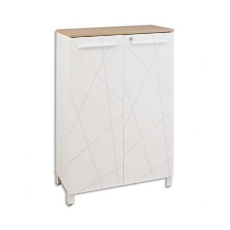 GAUTIER Rangement mi-hauteur blanc, 2 portes CHENE, étagères réglables, serrure, SUNDAY 80x114x40cm