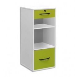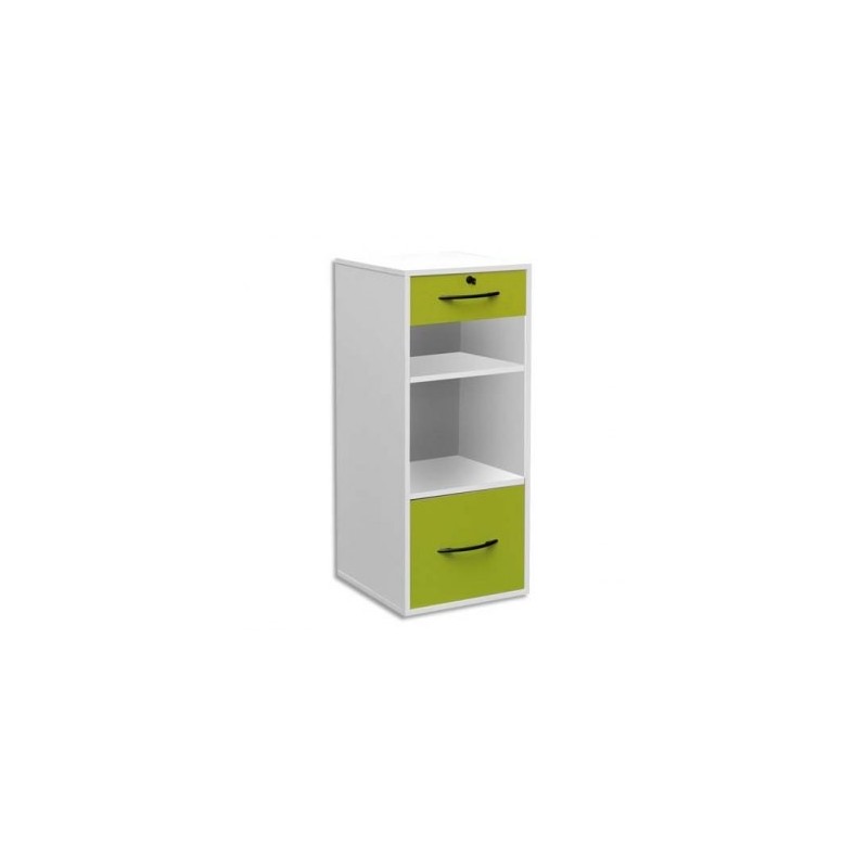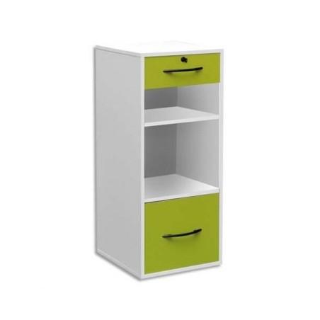 MT INTERNATIONAL Classeur mélaminé 2 tiroirs + 1 niche corps blanc tiroir vert - L42 x H101 x P44 cm