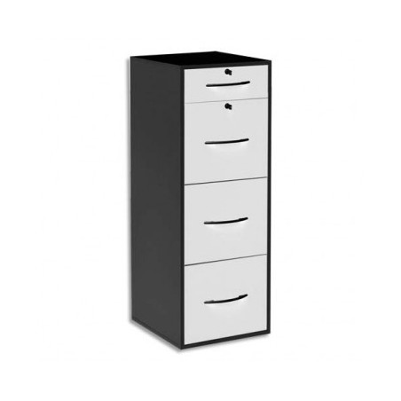MT INTERNATIONAL Classeur mélaminé 1 tiroir + 3 à dossiers suspendus corps noir tiroir blanc - L42 x H116 x P44 cm