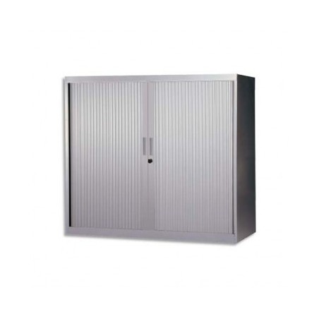 MT INTERNATIONAL Armoire basse métal monobloc Corps et Rideaux silver 2 tablettes - 120 x 105 x 43 cm