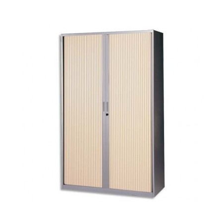 MT INTERNATIONAL Armoire haute métal monobloc Corps silver / Rideaux chêne clair 4 tablettes - 120 x 198 x 43 cm