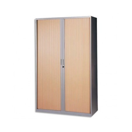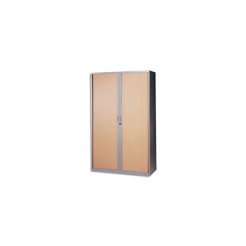MT INTERNATIONAL Armoire haute métal monobloc Corps silver / Rideaux hêtre 4 tablettes - 120 x 198 x 43 cm