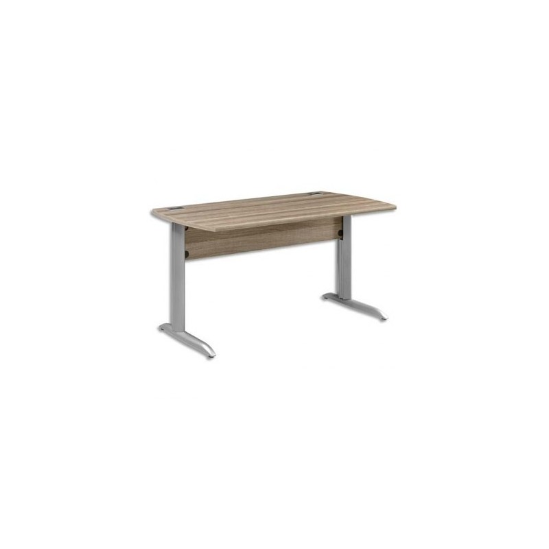 GAUTIER Table bureau pied métal avec voile de fond Jazz - Dimensions : L140 x H74 x P80 cm coloris Chêne