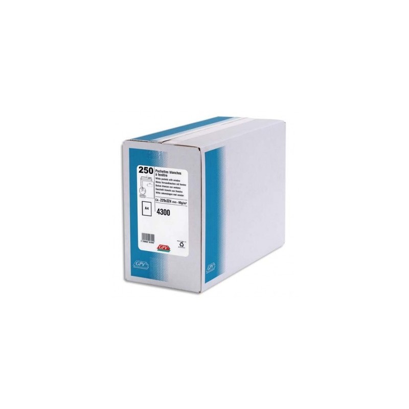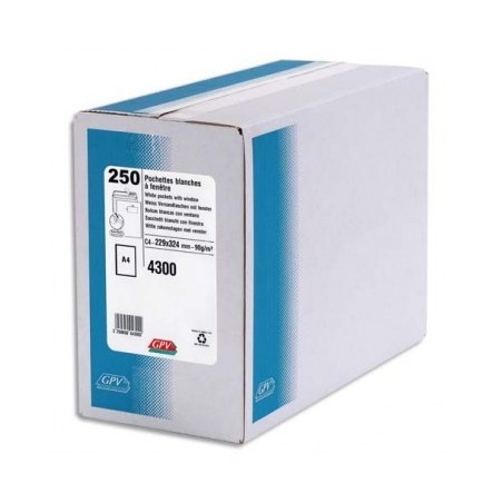 GPV Boîte de 250 pochettes auto-adhésives velin blanc 90g format 229 x 324 mm C4 fenêtre 50 x 110 mm