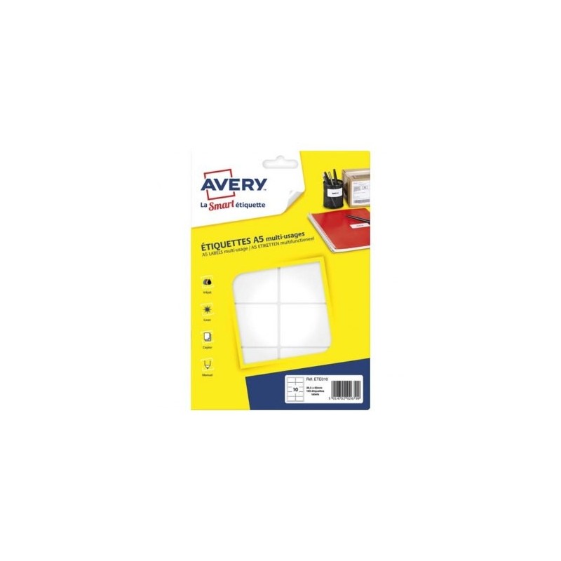 AVERY Sachet de 160 étiquettes multi-usage blanches 38,5 x 65 mm. Planche format A5. ETE010