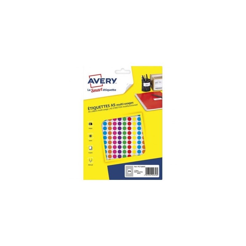 AVERY Sachet de 2058 pastilles Ø8 mm. Imprimables. Coloris assortis