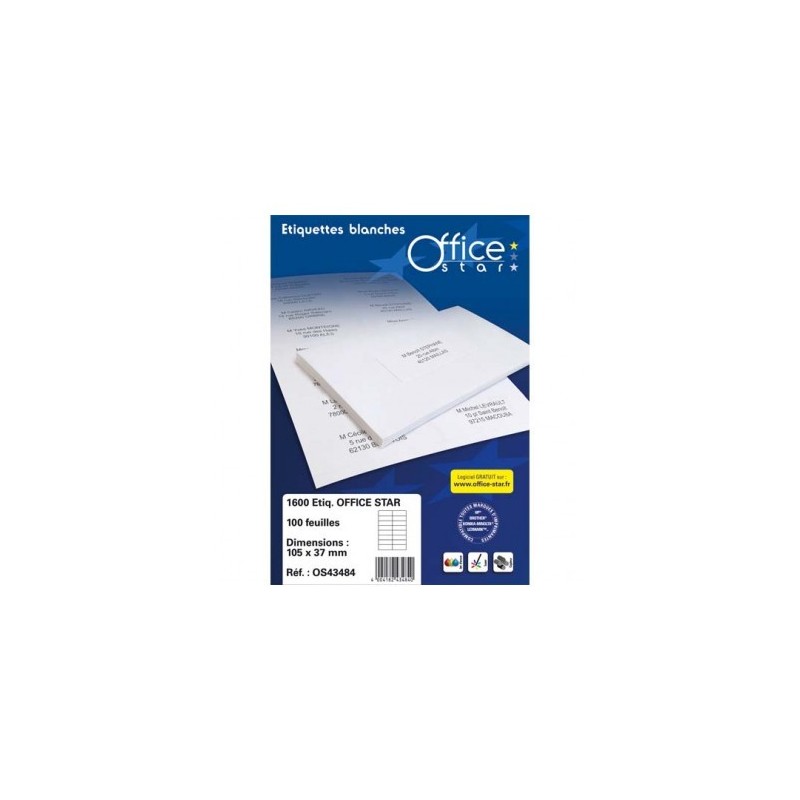 Etiquettes compatibles imprimantes jet d’encre, laser et copieurs. Téléchargez gratuitement le logiciel sur www.office-star.fr Compatibles tous types d’imprimantes.