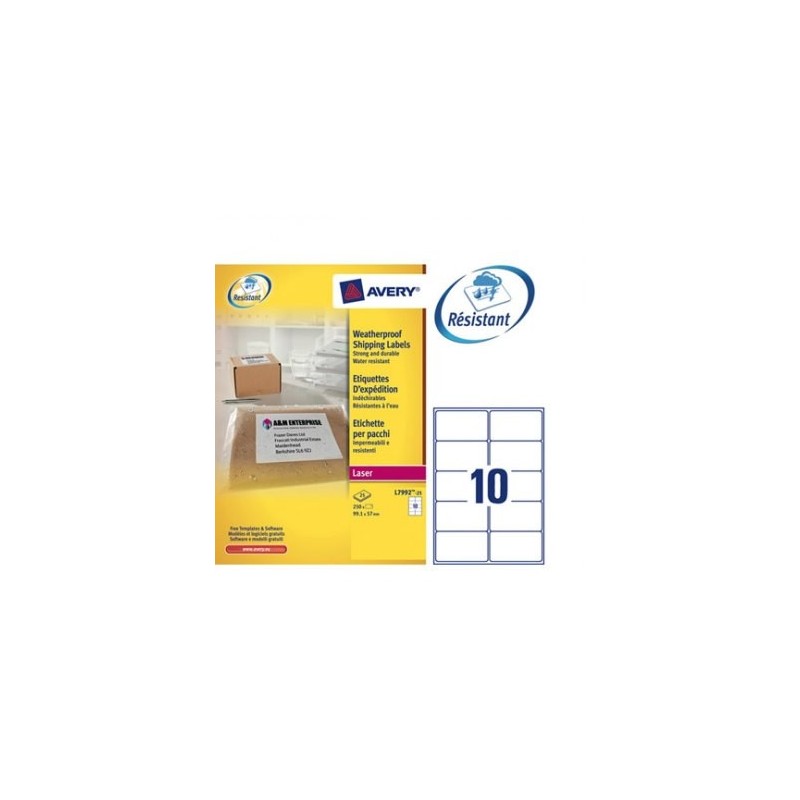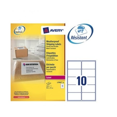 AVERY Pochette de 250 étiquettes d'expédition ultra résistante blanches 99,1 x 57 mm L7992-25