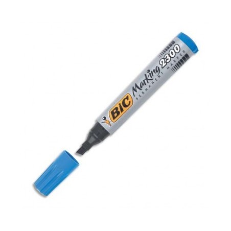 BIC Marqueur permanent pointe biseautée corps plastique encre à base d’alcool bleue 2300