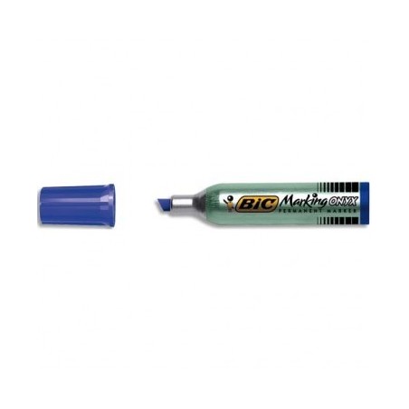 BIC Marqueur permanent pointe biseautée corps métal encre bleue indélébile ONYX MARKER STANDARD 1481