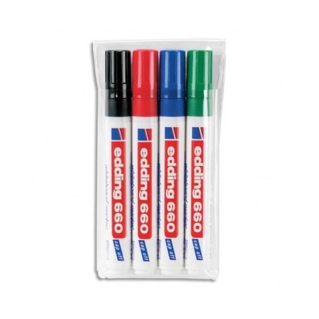 EDDING Pochette de 4 marqueurs effaçables à sec pointe ogive assortis E-660