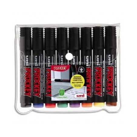 UNIBALL Pochette de 8 marqueurs permanents pointe ogive encre pigmentée à base d'eau UNI PROCKEY