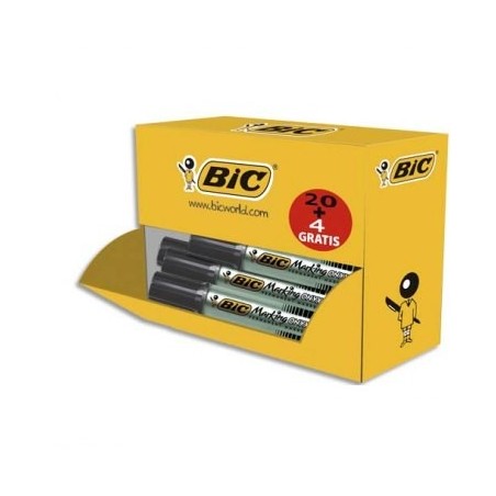 BIC Pack de 20+4 ONYX 1481 marqueur permanent pointe biseautée corps métal encre noire indélébile