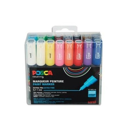 UNIPOSCA Pochette 16 marqueurs peinture à eau, encre pigmentation assortie, pointe fine PC1MC