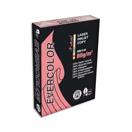 CLAIREFONTAINE Ramette de 500 feuilles papier couleur recyclé EVERCOLOR 80g A4 rose
