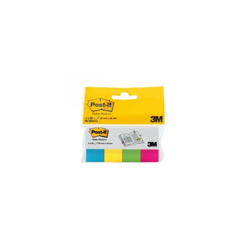 Etui de 4 blocs de 50 feuilles. Format 20 x 38 mm. Coloris assortis : vert, jaune, bleu, rose. Marque-pages papier !
