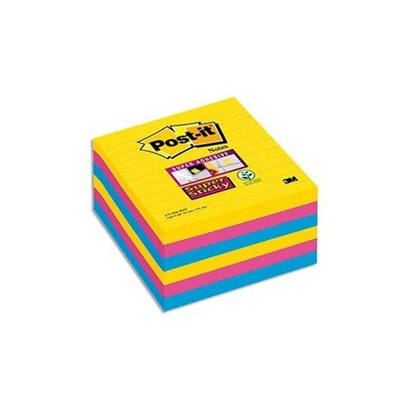 POST-IT Lot de 6 blocs 90 feuilles Super Sticky RIO lignées 101x101 mm assortis