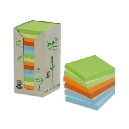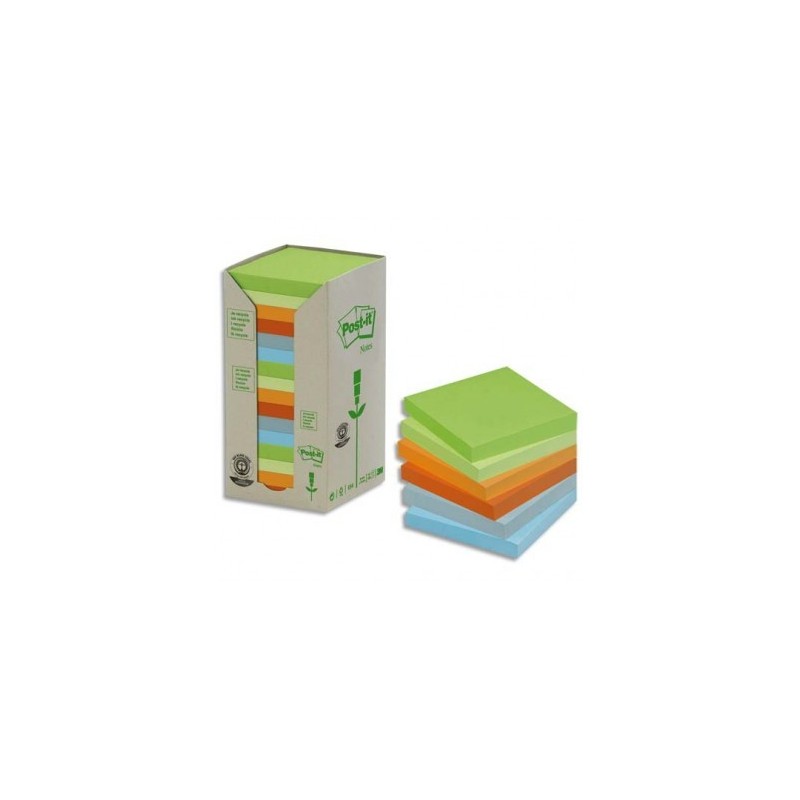 POST-IT Tour 16 blocs 100 feuilles 76x76 mm 100% recyclé. Coloris assortis