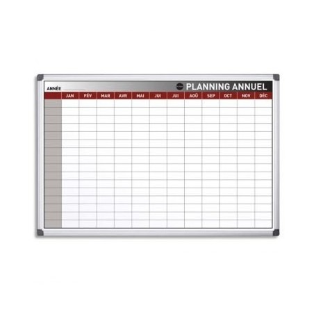 BI-OFFICE Planning annuel perpétuel magnétique - 90 x 60 cm blanc/gris