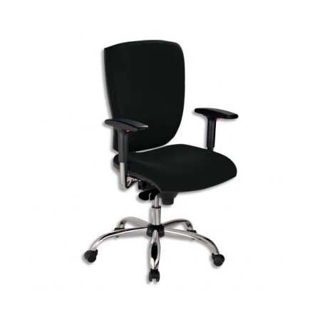 Mousse haute densité 45 kg/m3. Recommandé aux personnes de fortes corpulences. Tissu polyfibre classé non feu M1. Piètement en acier chromé muni de 5 roulettes sol dur. Support lombaire réglable en hauteur. Mécanisme synchrone Donati avec translation d’assise. Bras de dossier en fonte d’aluminium. Paire d’accoudoirs réglables en hauteur en option. Robuste, cette chaise de bureau noir permet une utilisation intensive !