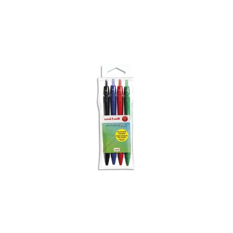 UNIBALL Pochette de 4 encre gel Jetstream 0,7 mm, pointe moyenne, coloris : noir, rouge, bleu et vert