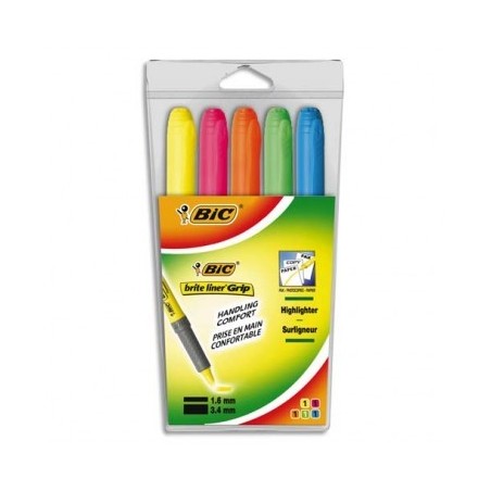BIC Pochette de 5 surligneurs assortis Brirteliner Grip