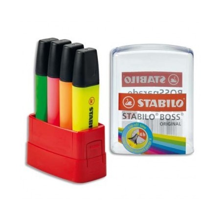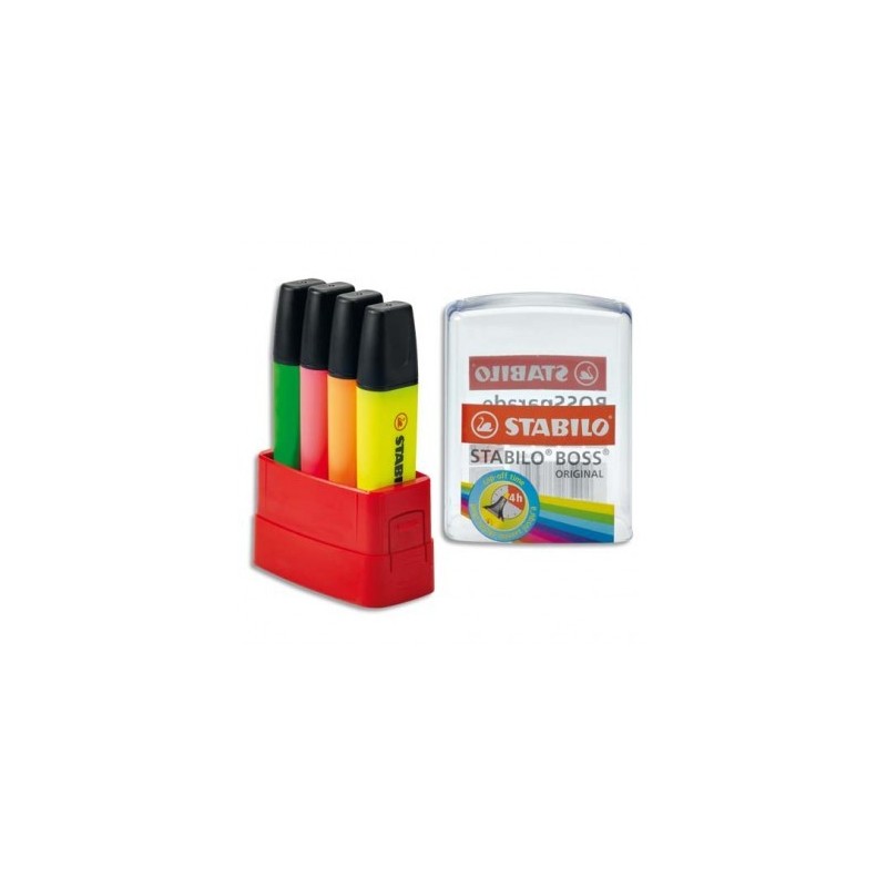 STABILO Box parade de 4 surligneurs Boss en boite rigide - jaune, vert, orange, rose
